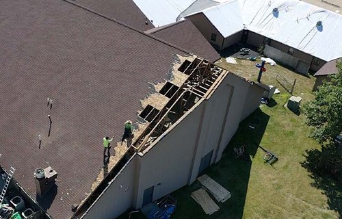 Emergency roof repair includes services to shore up structural damage to your roof and seal up roof leaks to prevent further property damage. Likewise, it could include an emergency roof tarp if you need a relatively short-term solution. When you're looking for a longer-term temporary solution, a roof shrink wrap may be the better option, as shrink wrap can last up to a year or longer in some situations.